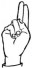 На ћирилици написано ШАЛЕ ВУНИЋ састоји се из 9 слова [?]. Исписано ћириличном једноручном азбуком за глувонеме: